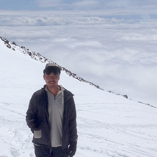 enjoying coffee and the view from Camp Muir on Mt. Rainier